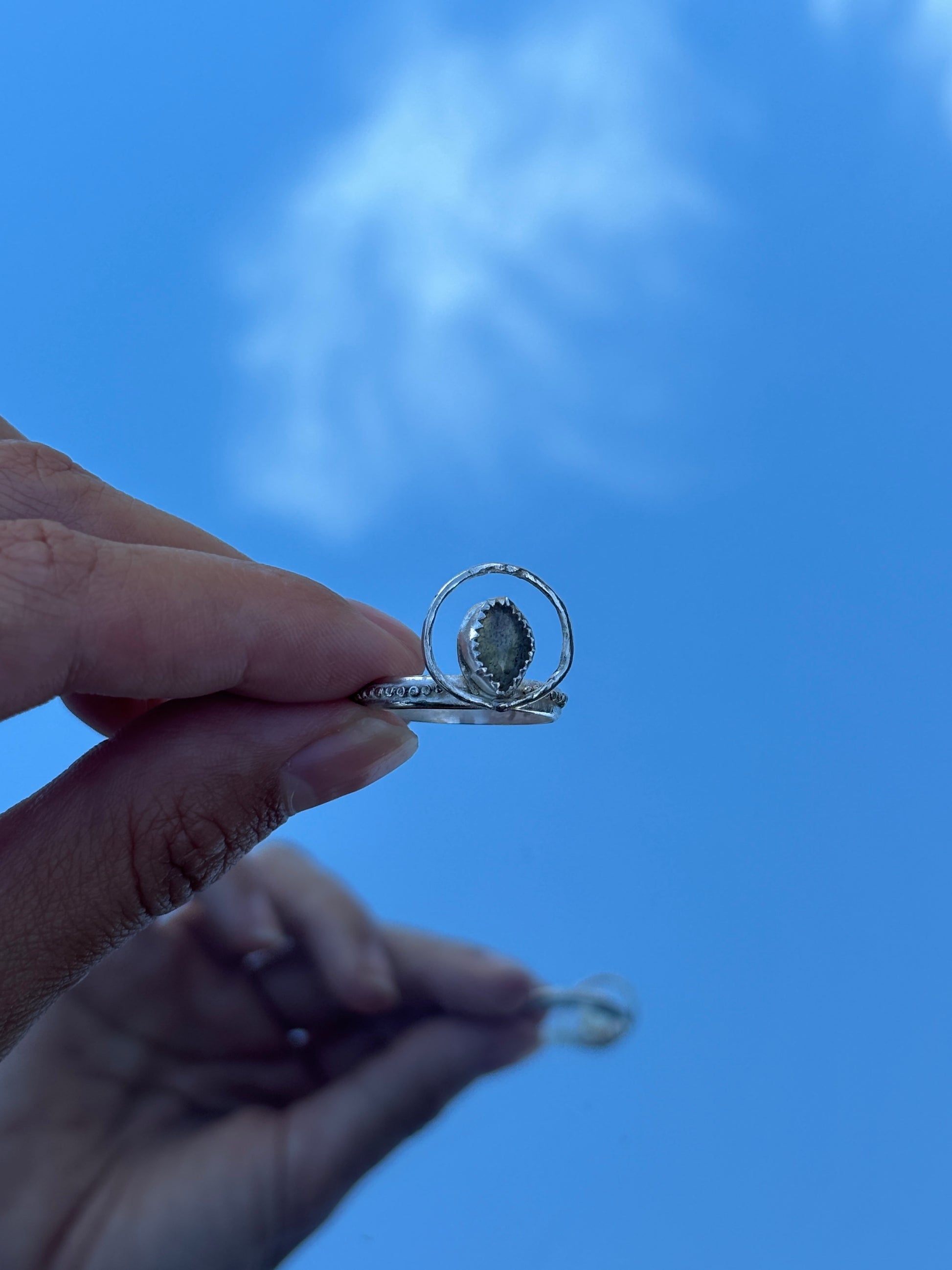 Crafted with labradorite stone set in sterling silver, this ring was designed to illustrate how He surrounds us with His love and protection. His presence forms a barrier that shields us, even in moments of doubt. When we seek to know Him and live a life that resists worldly influences, we can trust that He will be our refuge.