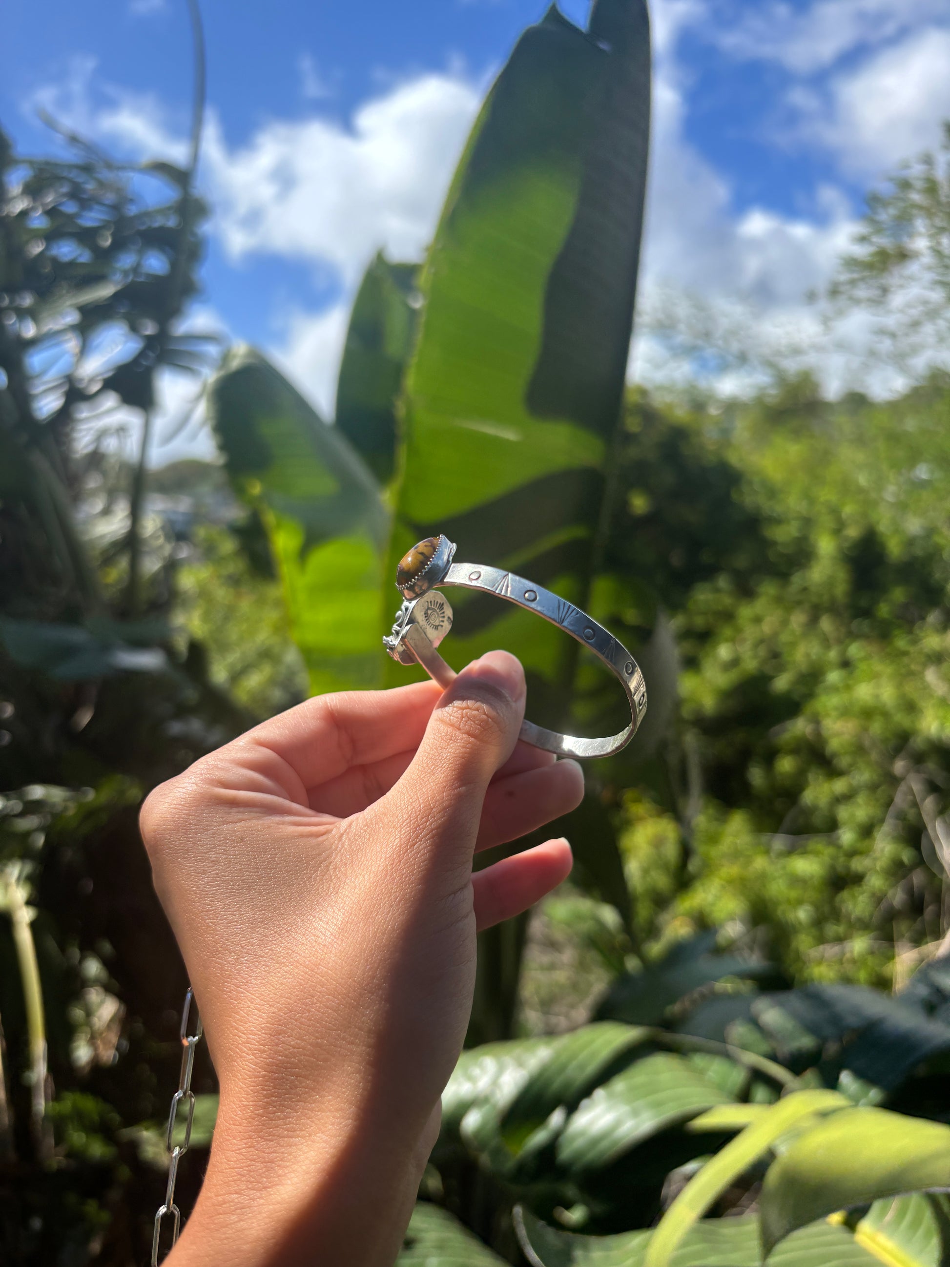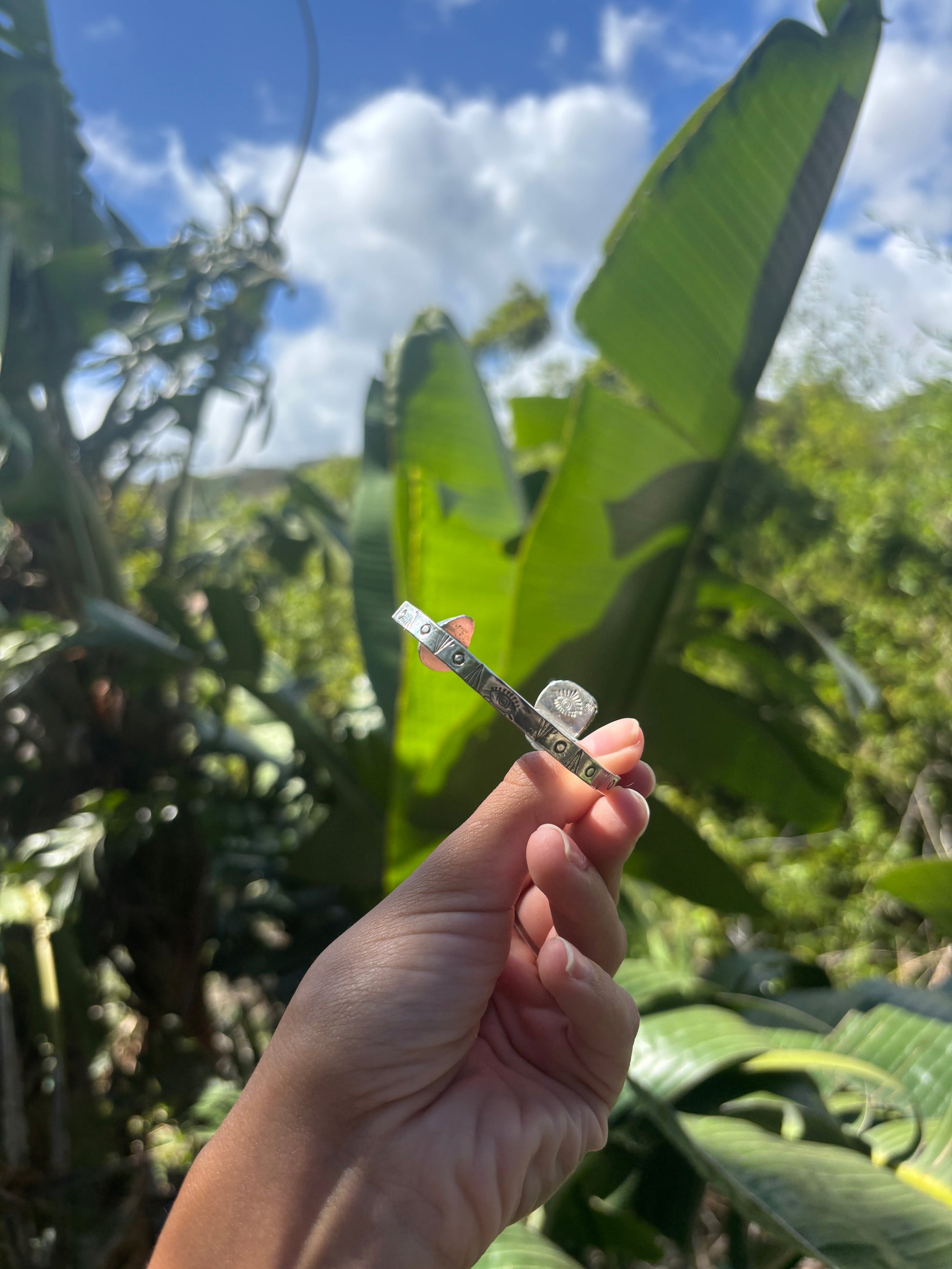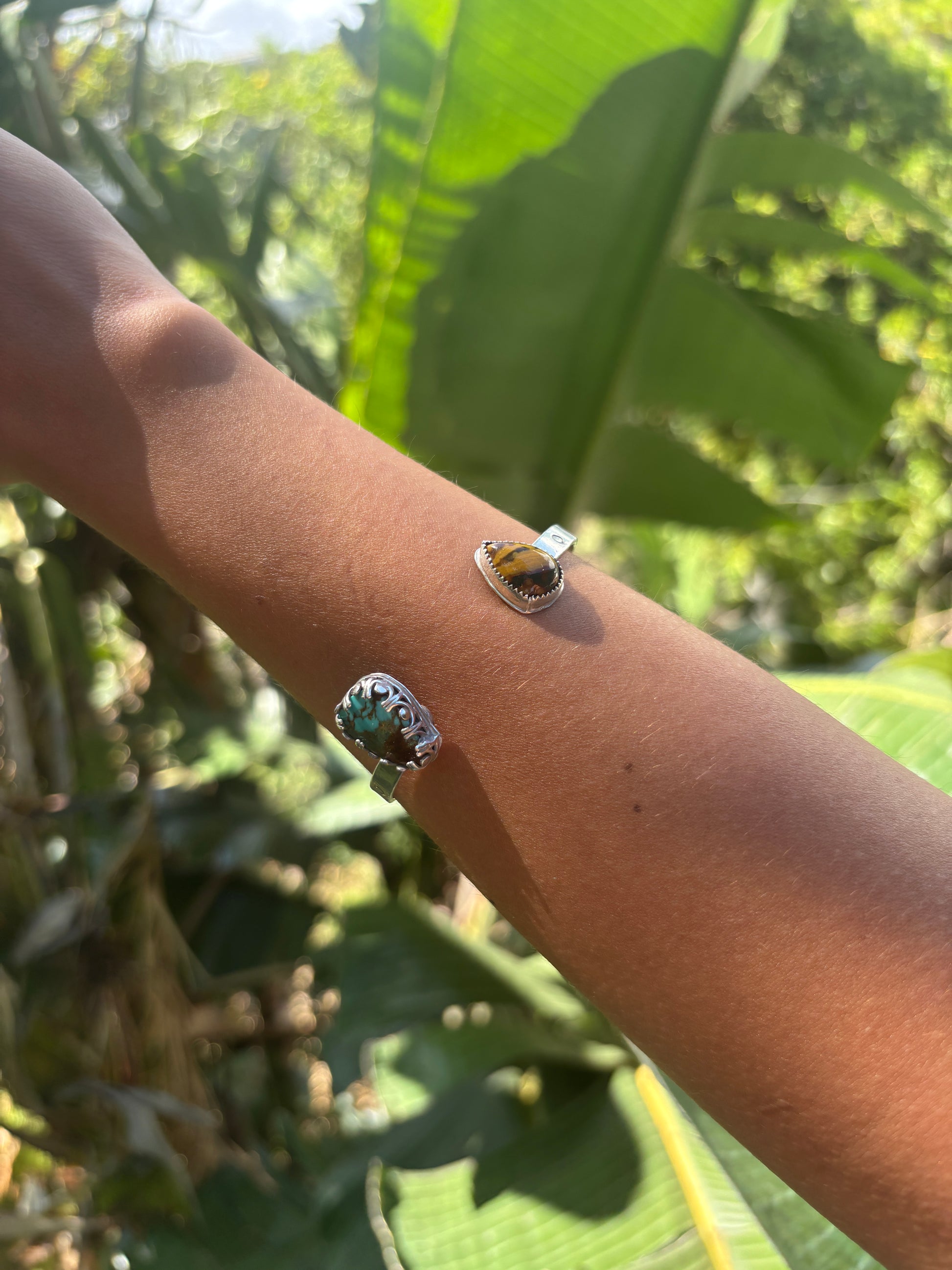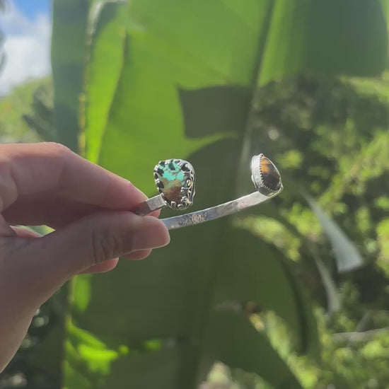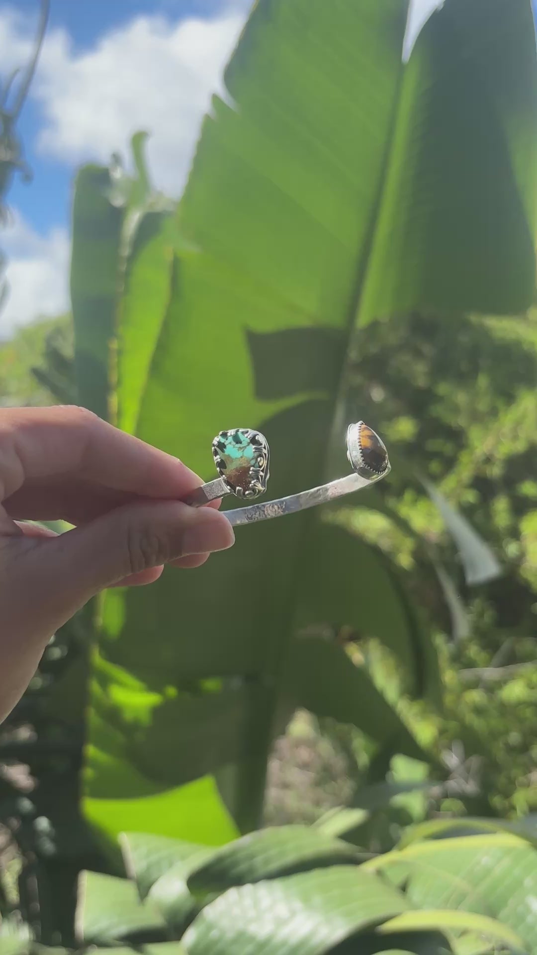 This handcrafted sterling silver cuff is stamped with intentional detail, ending in two stones—Jasper and Turquoise—symbolizing the diverse paths and landscapes of life. Like the vast, varied terrain of the earth, this piece celebrates the countless routes we journey through—both physical and spiritual. No path is the same, yet all are held in the wisdom of God's design.