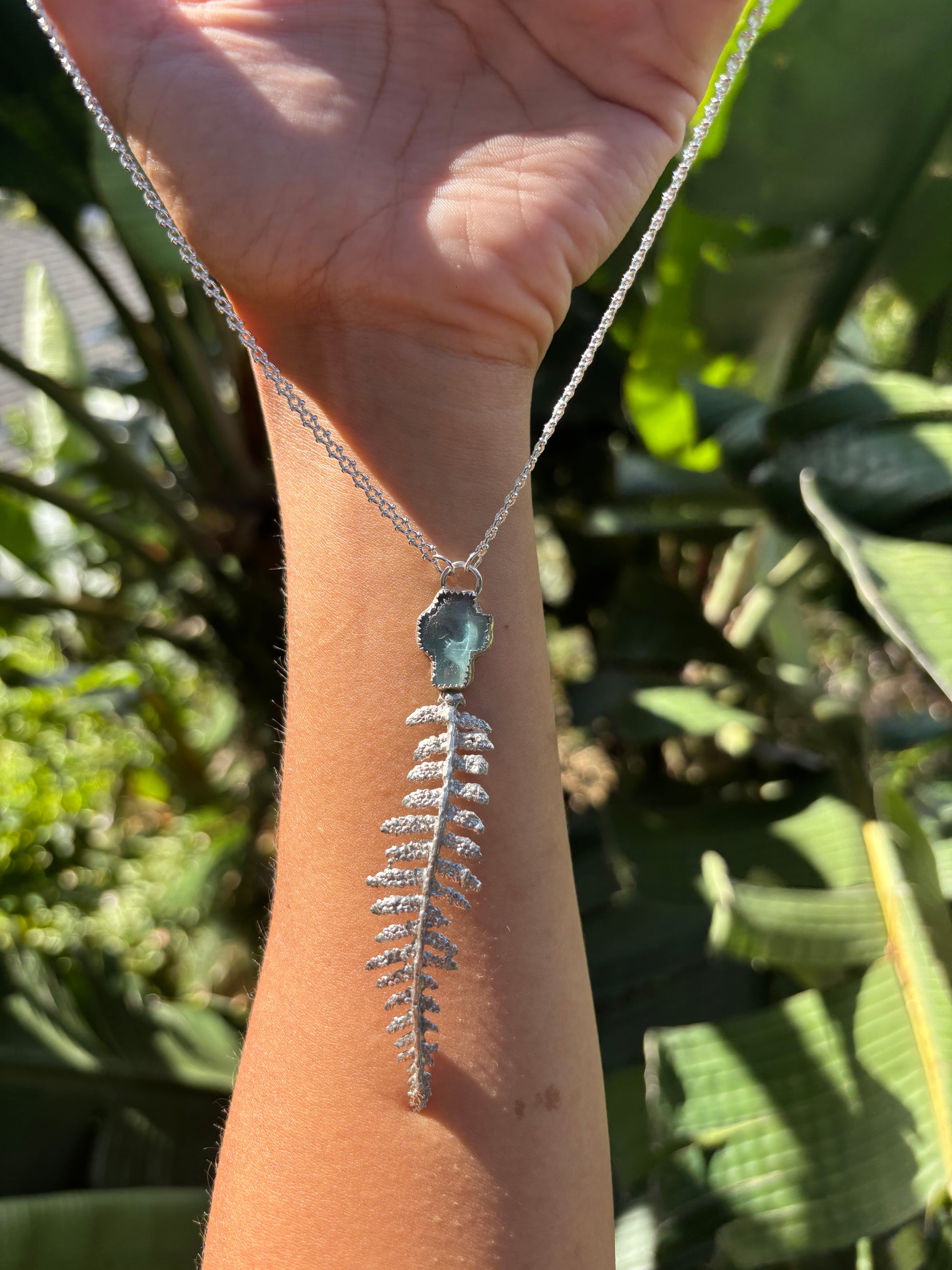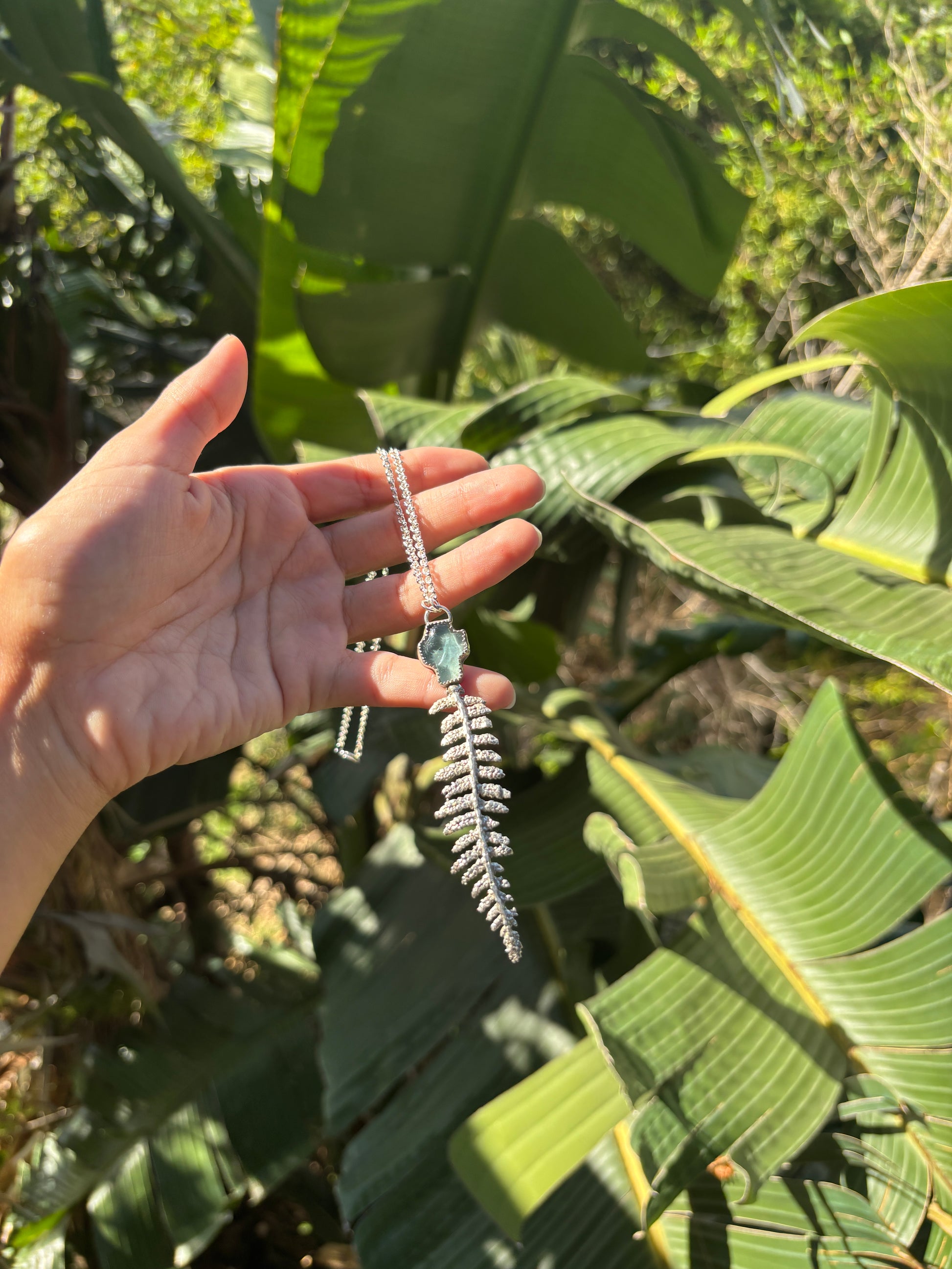 This sterling silver necklace centers a cross-shaped chrysoprase, supported by a large fern—an homage to the vastness of God's love, the depth of His sacrifice, and the protection found in His presence. The bold fern represents the grandeur of creation—lush, living, and full of divine intention. It mirrors the scale of Christ’s victory: a love so monumental that it reached across eternity to restore the world.